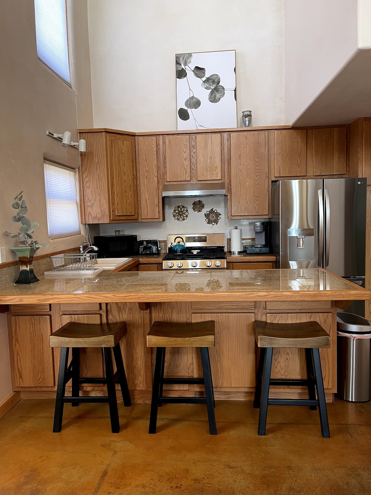 Nestled at the base of a majestic mountain, Casa del Rio offers sweeping views of the mesa and river, with the Jemez River flowing right through the property. Modern amenities meet natural beauty—enjoy sunsets from the deck, s’mores by the riverside firepit, and drift off to the soothing sounds of the water. Just five minutes from hot springs and scenic hikes, and only an hour from Santa Fe or Albuquerque, it’s the perfect place to relax, explore, and make unforgettable memories.