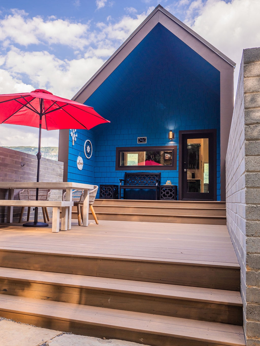Welcome to the Lookout Mountain Birdhouse! This modern cabin in the woods (completed in 2021) is surrounded by stone, trees, and a breath taking view! This house was built to stretch towards the clouds with a 1000 sqft deck and bird's eye view from inside. The 8 foot windows allow for an unobstructed view. The sunset facing view and valley below offer pure relaxation. Watch out for hang gliders and eagles- they love to fly by! Whatever your reason for visiting, this place has it