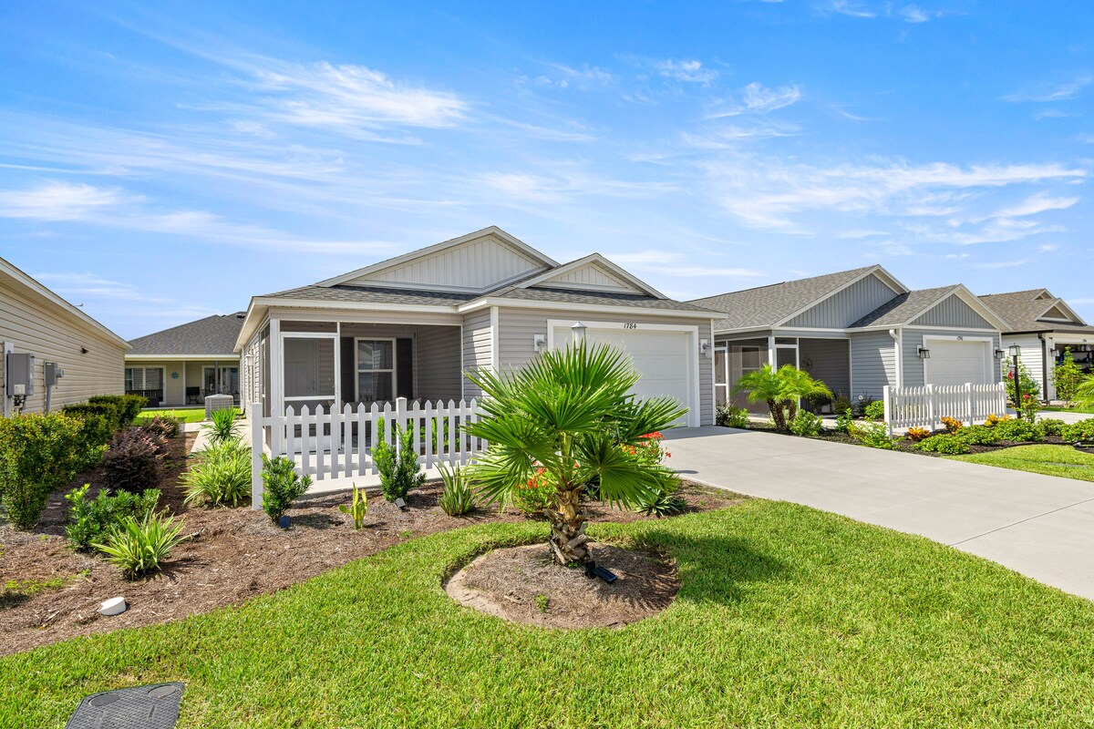 Enjoy a stylish experience at this centrally located 3-bedroom home. 5-7 minutes golf cart ride from Sumter Landing, 15 minutes from Spanish Springs Square, 20 minutes from Brownsville Square. 200 Community pools some for adults only and some for families. 13 Recreation Centers with Pickle Ball, Shuffleboard, Billiards, Study groups, etc. 3 Old Fashion Town Squares with nightly Live entertainment. 44 Golf Courses