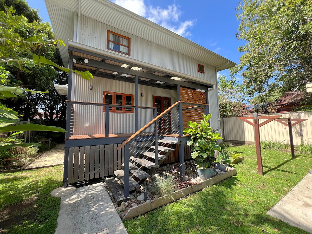 Cubbyhouse is the closest accommodation to Frazers Reef beach, just on the outskirts of Iluka bordering a lush nature reserve. Wake up to bird songs in the garden right outside your door. Sit in the garden & dine under the festoons. Wander the beach & national parks then cosy up to the indoor fire place or garden fire pit in the evening. There's a grocery store in town & a great op shop. The ferry can take you across the river to Yamba. Poochs welcome for an extra fee.
