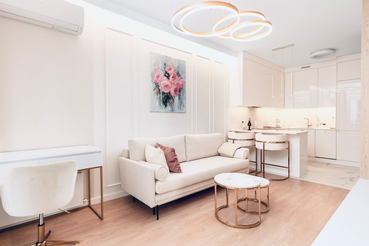 Welcome to our brand new charming studio in the centre of Wroclaw, it is situated just 100 meters away from the Odra and Olava rivers, offering stunning views and a tranquil atmosphere. Guests can enjoy a peaceful stroll along the riverbank or relax in the nearby park, which is just a few steps away.The central location of our apartment makes it easy to access all of the major attractions of the city, including the famous Market Square and Cathedral Island.
