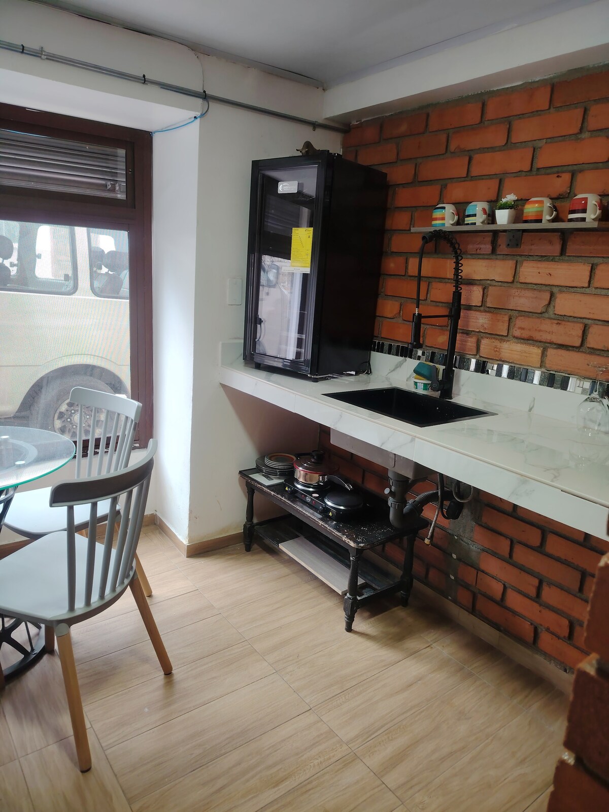 You will be in the heart of Vilcabamba, one hundred meters from the central park, where you can get the service of restaurants, ATMs, church, horse rental, bicycles, taxis, etc. You can go to the river, to the trails surrounded by beautiful nature or climb Mandango, a characteristic hill of the town. The apartment has two rooms: one, with a balcony and double bed; the other has two beds, one with two beds and the other with a bed and a half; There is a living room, kitchen and dining room.