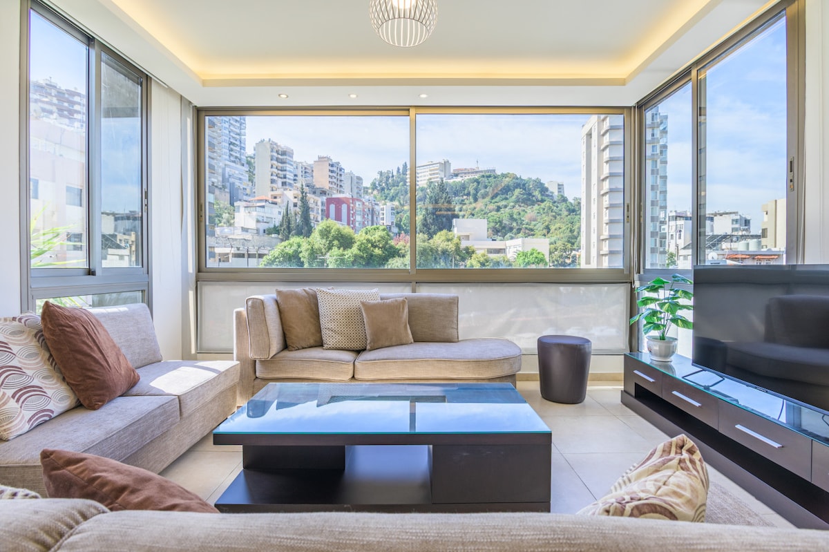 This charming home in Baouchrieh offers a prime location just moments from Beirut, while providing a peaceful escape from the city’s hustle and bustle. 1 min by car to City Mall. Steps away from Mac Do, a microbrewery, restaurant, grocery store & salon. Relax in the living room with sweeping views and dine on the luxurious dining table. Double-glazed windows offer calm & blackout curtains promote a restful sleep. 24/7 electricity. AC, WiFi, parking available. Recommendations guide at check-in.
