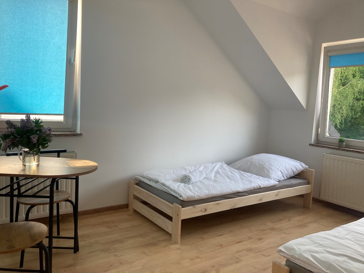 We offer a beautiful, three room apartment in a quiet and peaceful housing estate in Zielona Góra. We offer a living room, bedroom, and guest room. The apartment has a fully equipped kitchen, bathroom with shower and toilet. It is equipped with two workspaces (desks with chairs) and internet access (1Gbps). The living room has a fold-out table that seats up to 6 people, a large TV with cable TV, and a bookshelf. The apartment can comfortably accommodate 5 people.