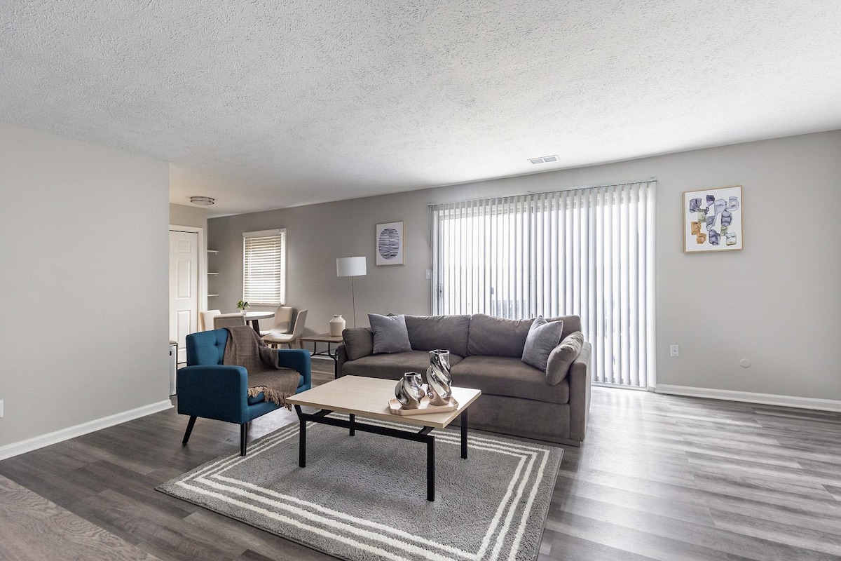 BRAND NEW upscale one bedroom apartment with king bed. Minutes away from Downtown Fishers. Complex is conveniently located next to nature preserve, walking path & Nickel Plate Trail. Enjoy the amazing amenities: Pool, hot tub, fitness center, business center, clubhouse lounge & outdoor grilling space. 10mins away from Ruoff Music Center. Note: POOL AND HOT TUB ARE DURING SUMMER MONTHS ONLY. (FROM MEMORIAL DAY THROUGH LABOR DAY)
