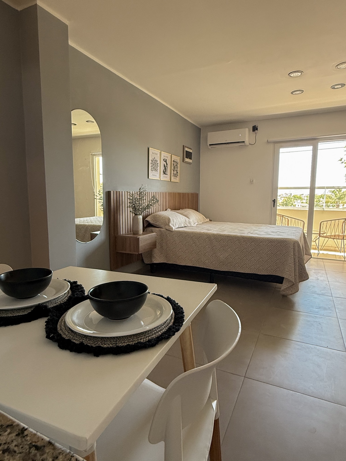 Modern and bright apartment in the heart of San Juan It is on the first floor by stairs and is distinguished by its top-quality porcelain finishes, north-south orientation that fills it with natural light and a modern design designed for two people. Fully equipped: top-of-the-line appliances, Smart TV, and fiber optic WiFi. Bedroom with closet and decorative plants that provide warmth. Spacious and comfortable bathroom, with all the amenities needed for your stay.