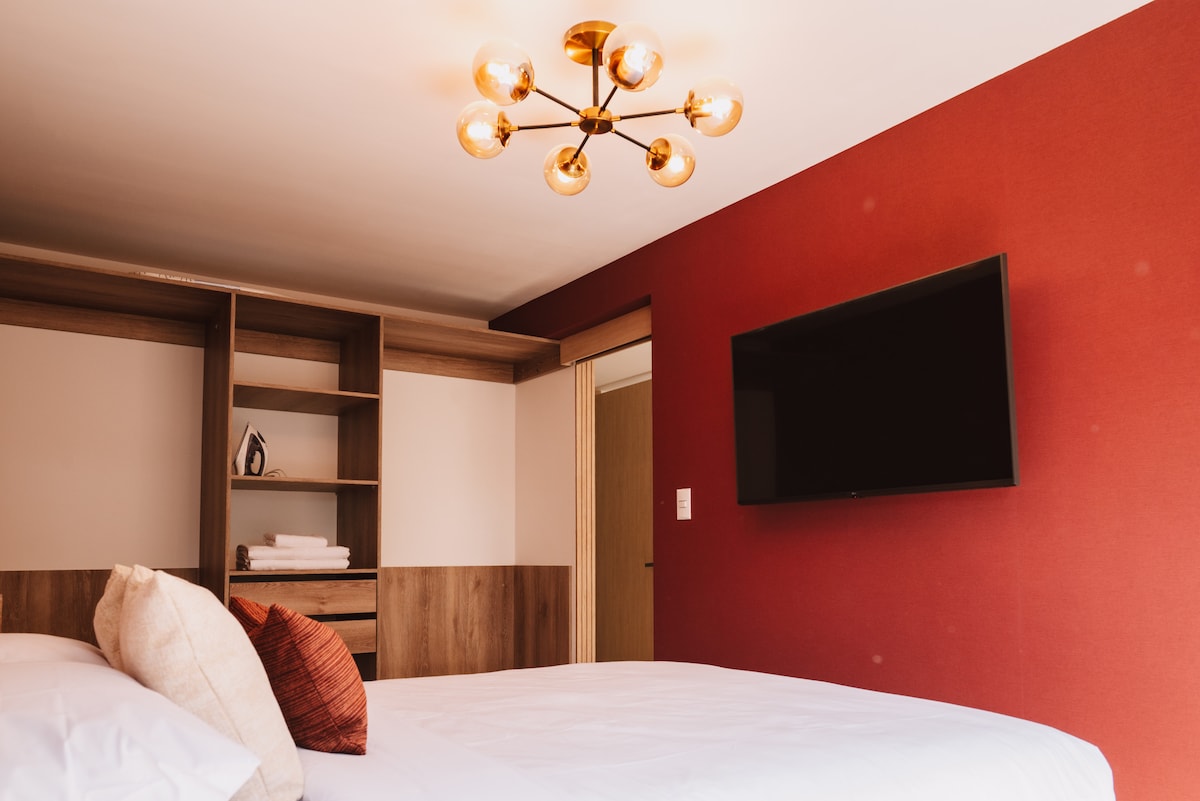 This eclectic style apartment in Quo building includes a King bed, living room, equipped kitchen, full bathroom, breakfast, balcony, linens, towels, TV, Alexa in common areas and parking. Among the amenities the building has commerce on the first level, including several restaurants and supermarket, recreation area, outdoor dining areas, children's games. All in one place.